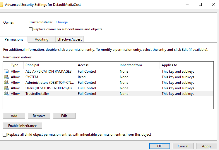 - Right click DefaultMediaCost and click permissions: